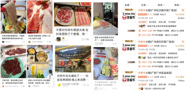 仔细观察许府牛的服务模式,与多数品牌不同,许府牛采取了线下向线上导流的方式。首先,许府牛在抖音上进行常态化的直播推广,有效地吸引了线上流量。