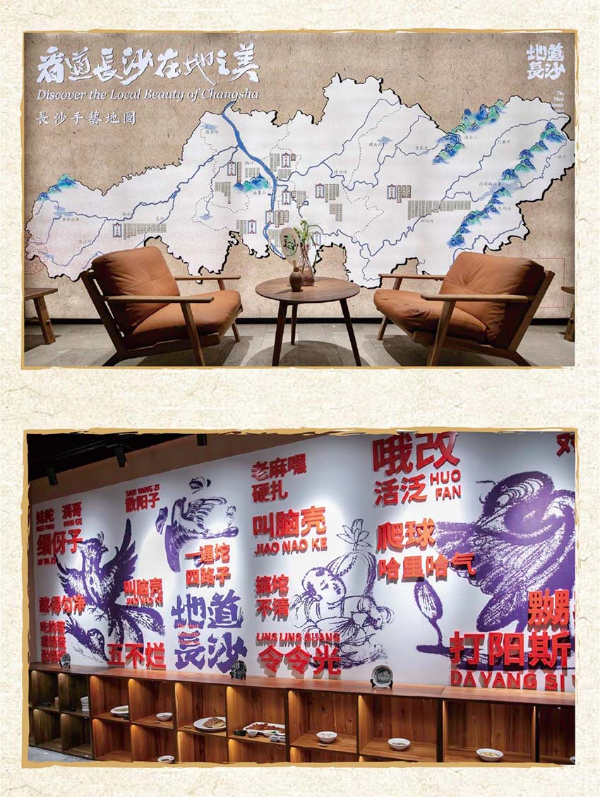 此外,该馆还囊括了近600件长沙及全国各地的非遗民艺作品,包括湘绣、长沙铜官窑、长沙面塑、望城剪纸、望城皮影、滩头年画、浏阳夏布等,涵盖长沙及全国各地非遗民艺作品。同时,还设有三面文化墙——长沙手艺地图、长沙文字墙、长沙放言墙。