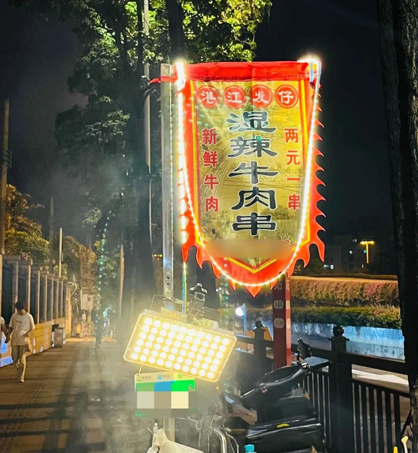 在广州,红餐网注意到,近2个月,在白云、番禺、天河、海珠、花都等各区都有出现了2元烧烤。像海珠区的城中村——客村附近,已经有不少于4家卖烧烤的摊位,这些摊位都叫“XX湿辣牛肉”,只卖2元一串的牛肉。家住客村的白领盼盼告诉红餐网,其中一个网红小摊“阿振湿辣牛肉”每晚都排长队,晚上7点开摊就能排到60多号。