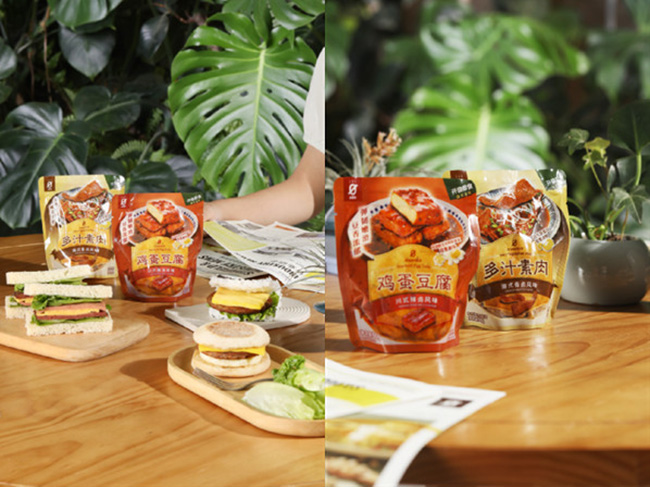 星期零鸡蛋豆腐(川式辣卤风味)和多汁素肉(潮式香卤风味)是此次推出的创新豆制品,展现了独特的工艺和风味组合。星期零鸡蛋豆腐选用11°鲜浓豆浆与鲜蛋液融合,经过连续式真空脱气,使口感更加绵密细腻,采用熟浆工艺,并经过两道油炸,呈现外酥里嫩的质感。而多汁素肉则通过低温冷藏反应和高温蒸煮定型,采用先炸后卤的制作工序,口感弹韧、多孔易吸汁。这两款创新产品结合经典的卤制风味,带来了风味饱满、卤香浓郁的味觉体验。